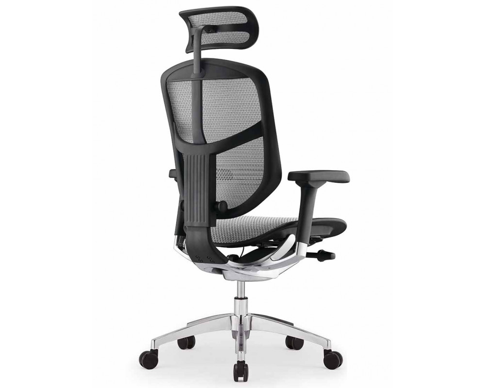 Классическая эргономичная сетчатая спинка с лекальной формой, повторяющей естественные, изгибы позвоночника установлена на литое, металлическое, усиленное основание в составе единой конструкции кресла. По сравнением с первой версией компьютерного кресла ENJOY Elite размер спинки увеличен до 557 мм по высоте и до 500 мм по ширине.