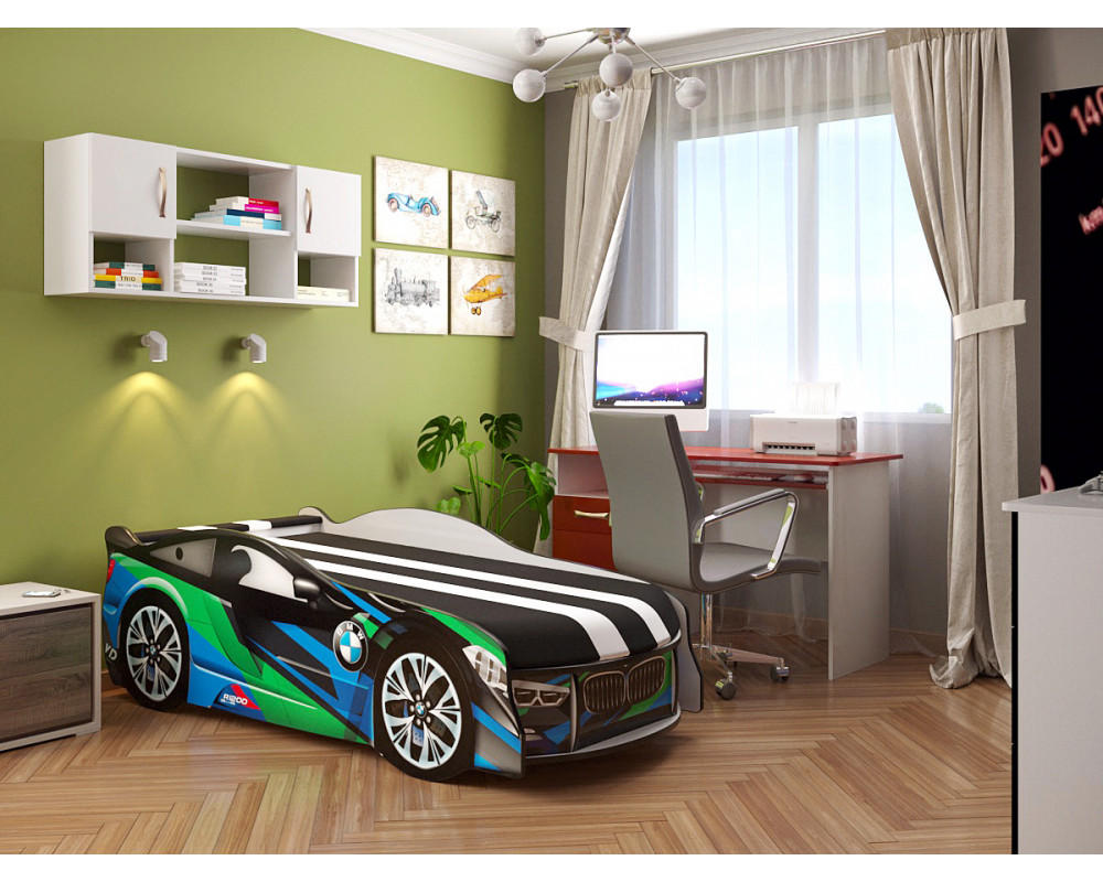 Кровать+матрас Viorina-Deko SPACE 03 Зелено-синий изготовлена фабрикой Viorina-Deko из качественных материалов и подойдет для деток от 3-х лет. Конструкция с мягким спойлером и подушкой. Рисунок выполнен с помощью ламинированной наклейки, которая устойчива к механическим повреждениям и выцветанию, а так же легко моется.