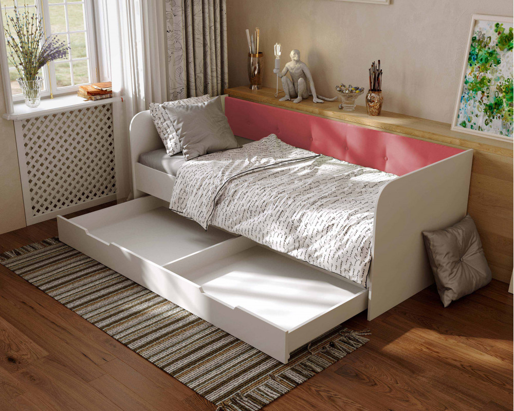 Кровать односпальная Valencia с ящиком+защитный бортик Viorina-Deko коралловый изготовлена фабрикой из качественных и безопасных материалов. Каркас из ЛДСП 16 мм (Swisspan). Современный дизайн кровати и стильное сочетание ЛДСП в такой оригинальной расцветке подчеркнёт уютную атмосферу спальни.