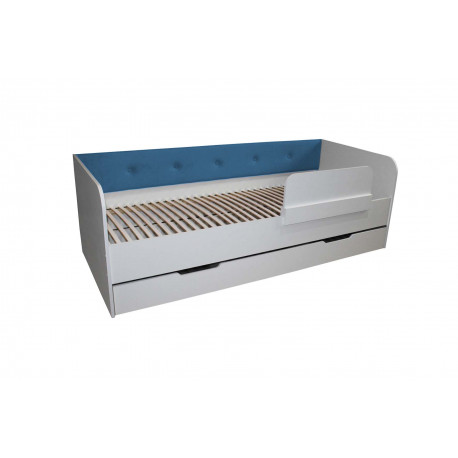 Кровать односпальная Valencia с ящиком+защитный бортик Viorina-Deko синий изготовлена фабрикой из качественных и безопасных материалов. Каркас из ЛДСП 16 мм (Swisspan). Современный дизайн кровати и стильное сочетание ЛДСП в такой оригинальной расцветке подчеркнёт уютную атмосферу спальни.