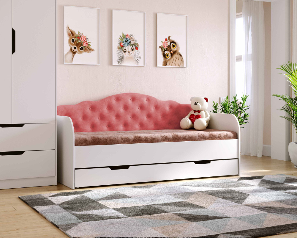 Кровать-диван Sofia Viorina-Deko изготовлена фабрикой из качественных и безопасных материалов. Кровать в тканевой обивке станет уютным место для сна, а современный дизайн и яркая расцветка преобразить интерьер любой комнаты.