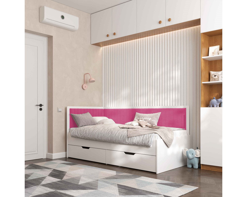 Кровать с ящиками Brooklyn Coral/White изготовлена фабрикой Viorina-Deko из качественных и безопасных материалов. Спинка кровати в тканевой обивке, приятная на ощупь и создаёт дополнительный уют для сна. Современный дизайн и яркая расцветка кровати преобразить интерьер любой комнаты.