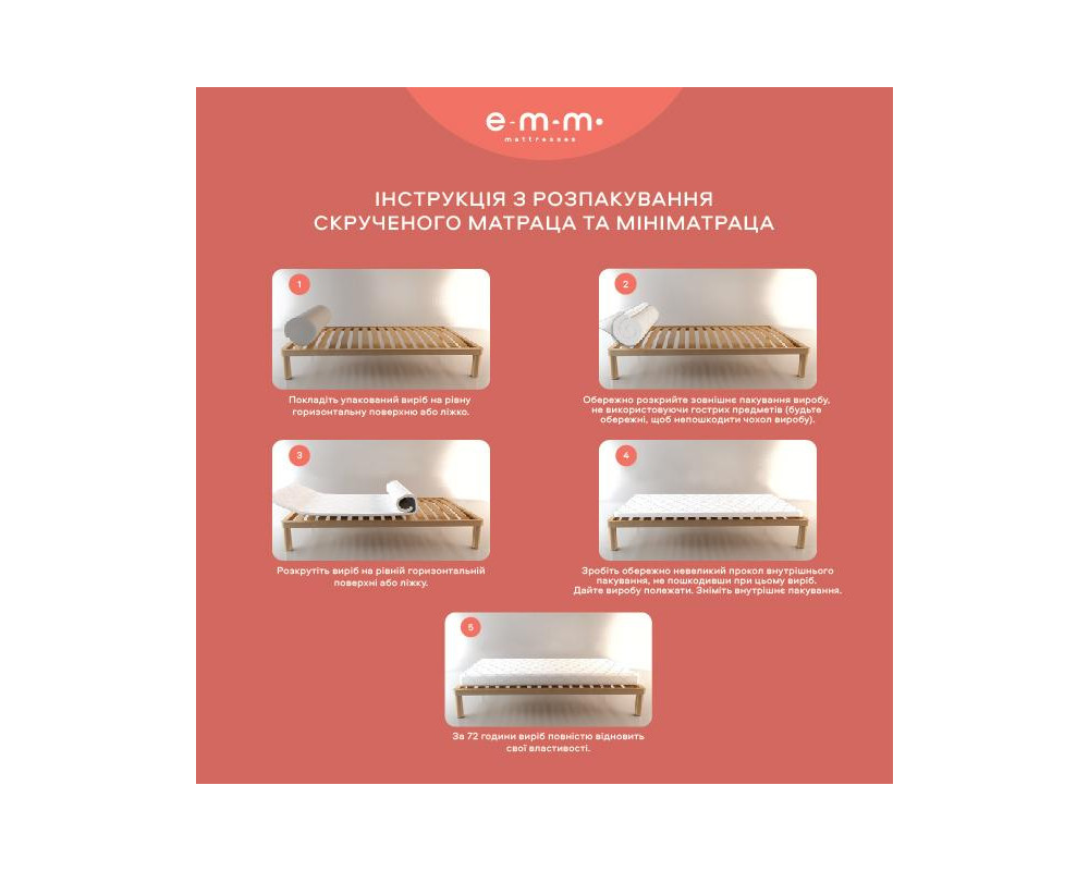 Матрас доставляется скрученным в вакуумной упаковке. Благодаря этому его легко можно поднять в квартиру или занести в дом. После распаковки матрас восстанавливает свою форму и превращается в полноценное спальное место.