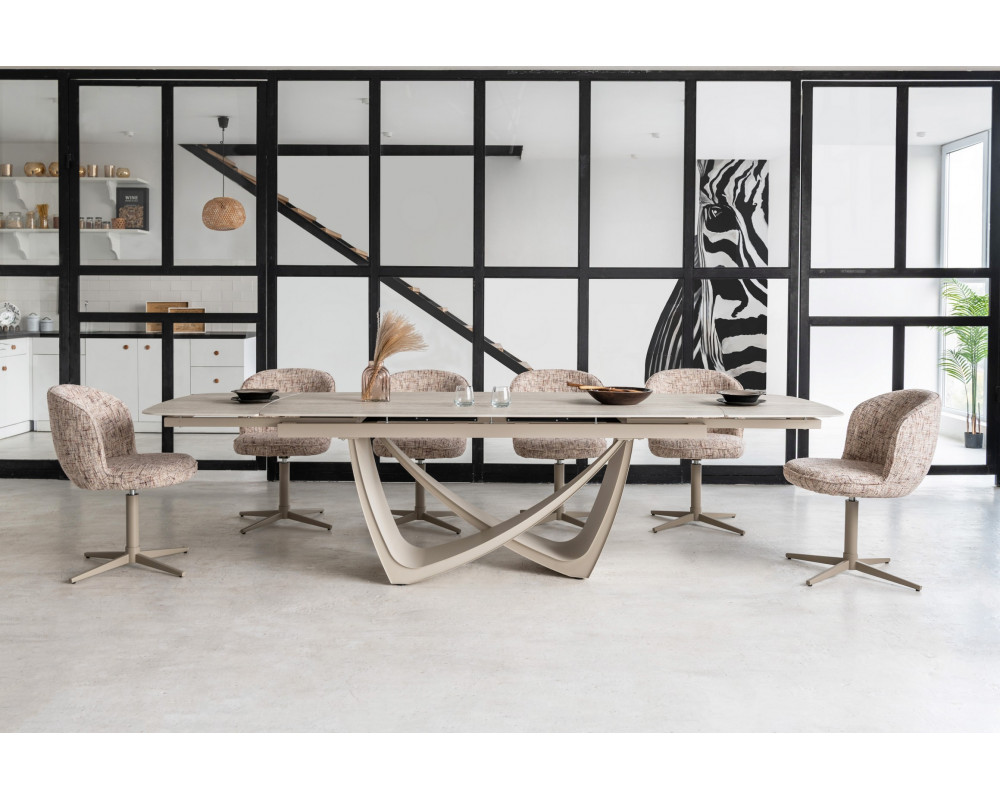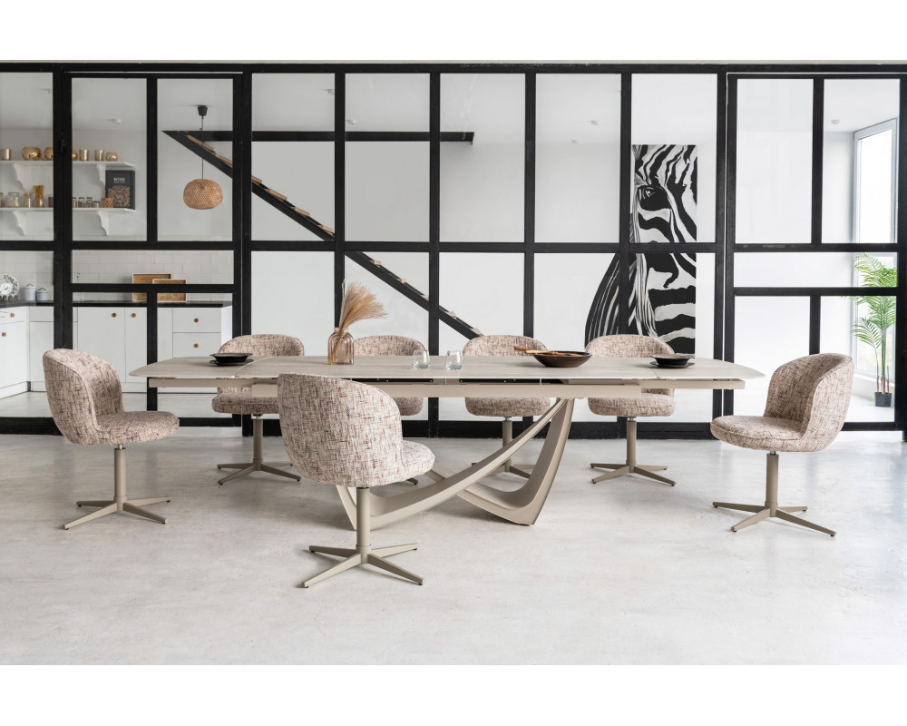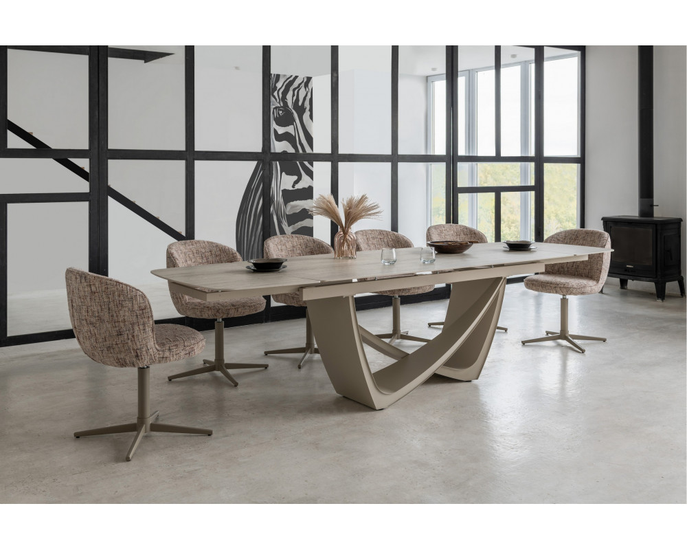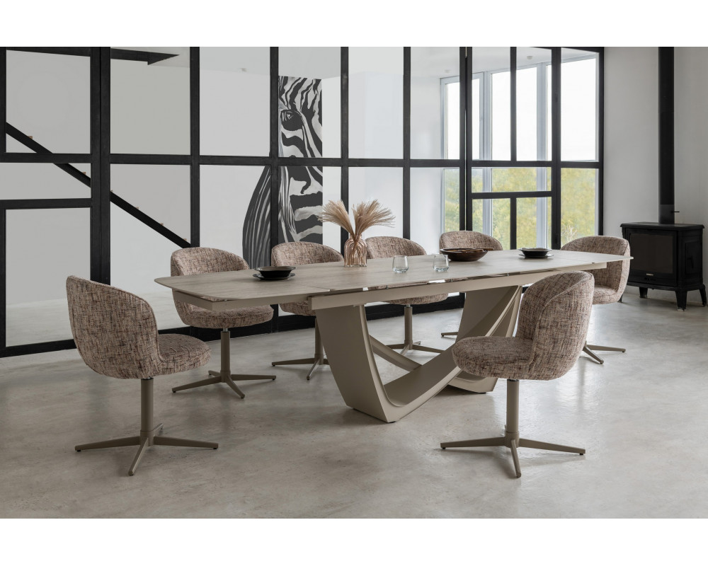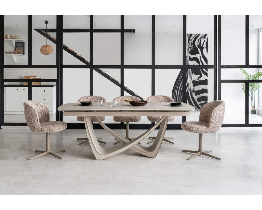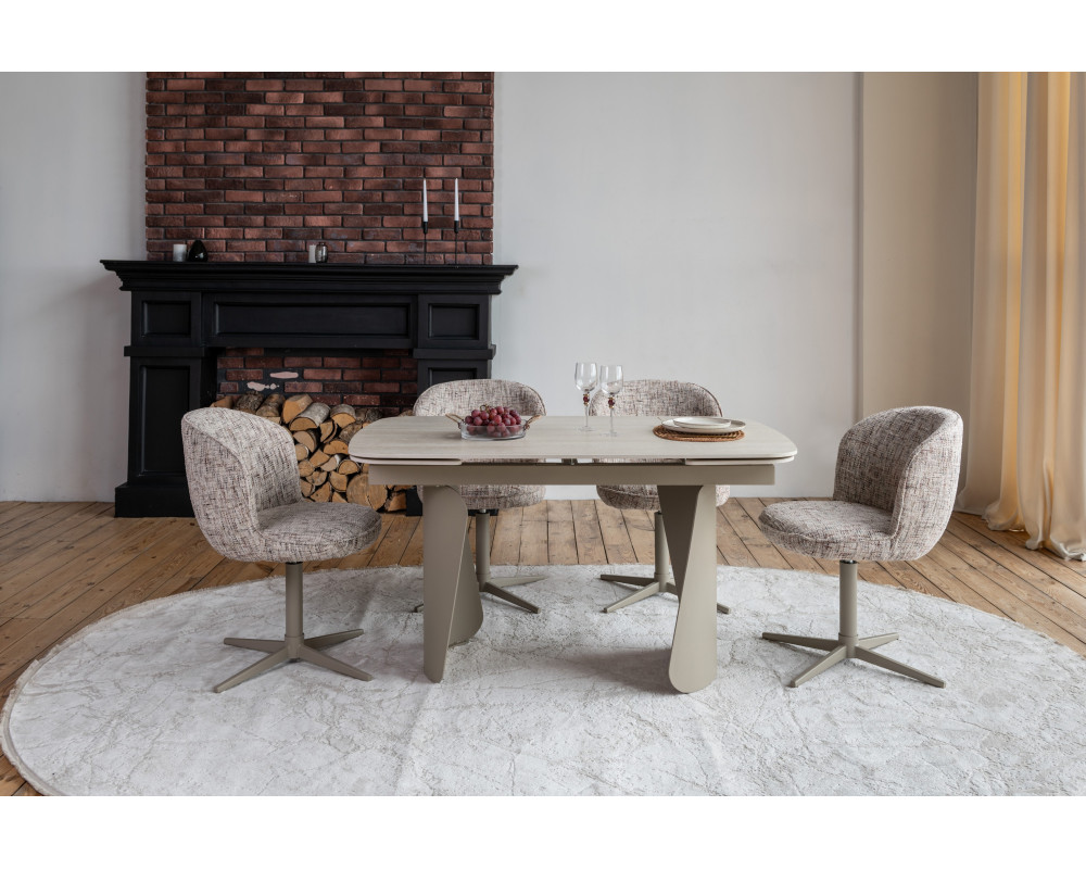 Уникальный Дизайн и Цвет: Карамельный оттенок обивки из фактурного твида шамбрей придает тепло и уют любому интерьеру. Металлическое основание, окрашенное в цвет капучино, добавляет гармонии общему виду.