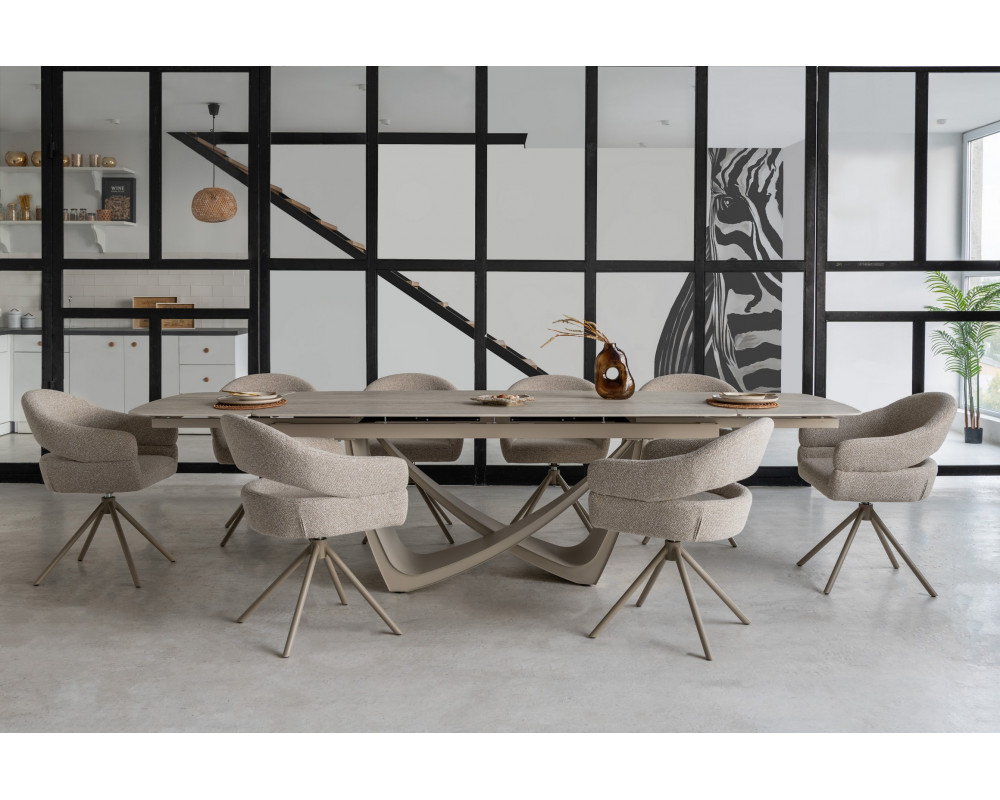 Стул R-180 в оттенках бежевого льна и капучино сочетает современный стиль и максимальный комфорт. R-180 станет стильным и практичным решением для дома или рабочего пространства.
