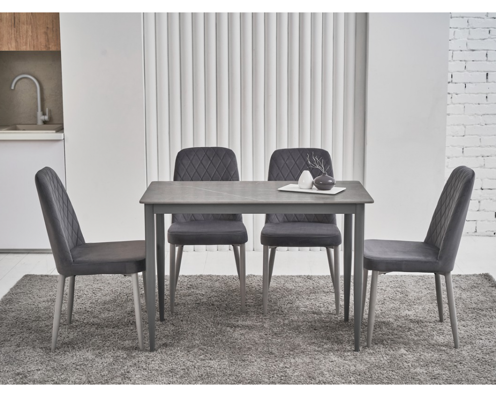 Обеденный стол TM-110 Петра Грей — это элегантность в каждой детали, идеальная для современного интерьера. Столешница из матовой керамики в цвете "петра грей" имитирует натуральный камень, добавляя пространству сдержанной роскоши. Благодаря матовой поверхности, стол не бликует, устойчив к царапинам и легко очищается, что делает его очень практичным для ежедневного использования.
