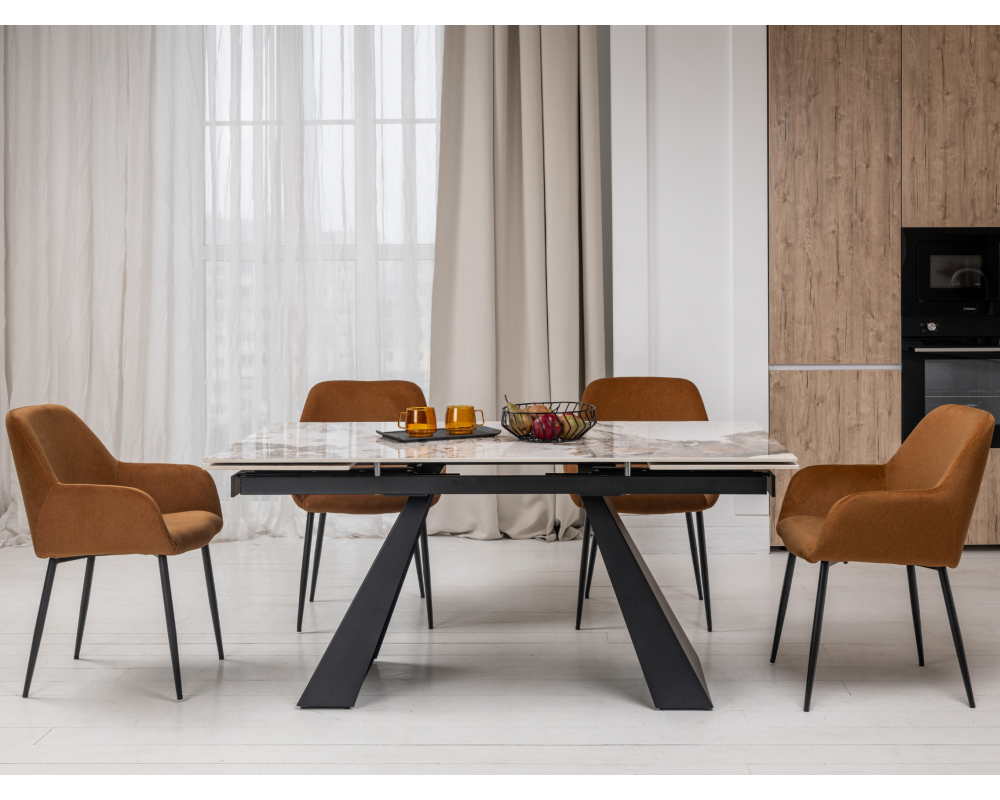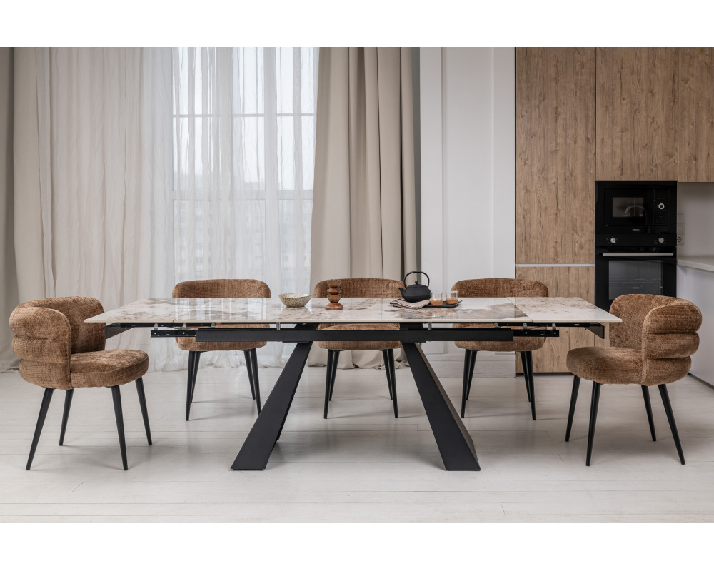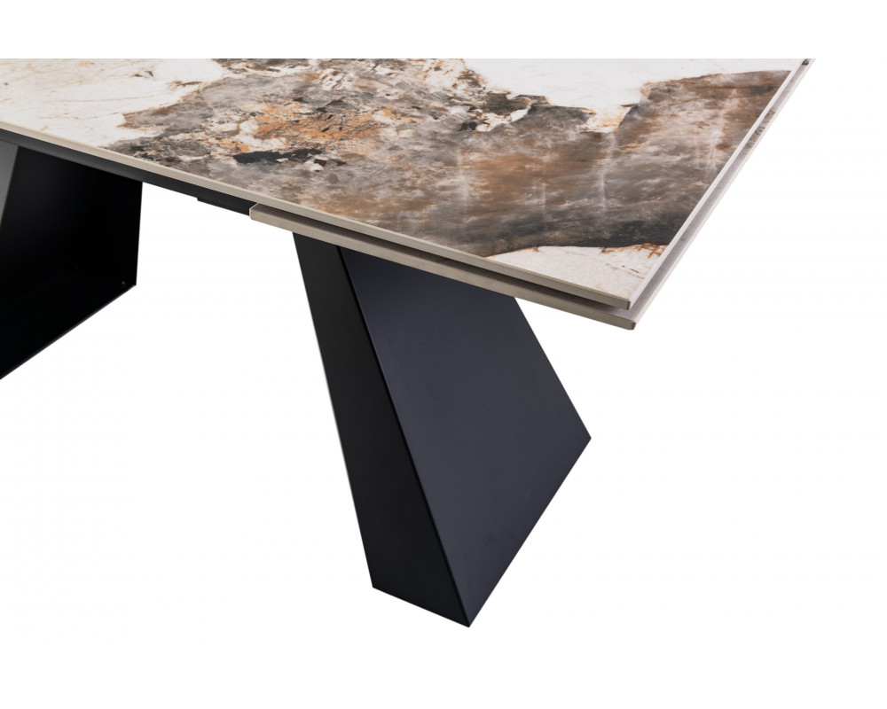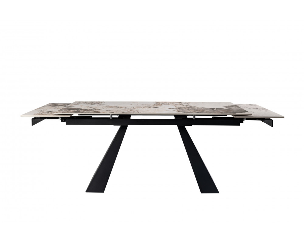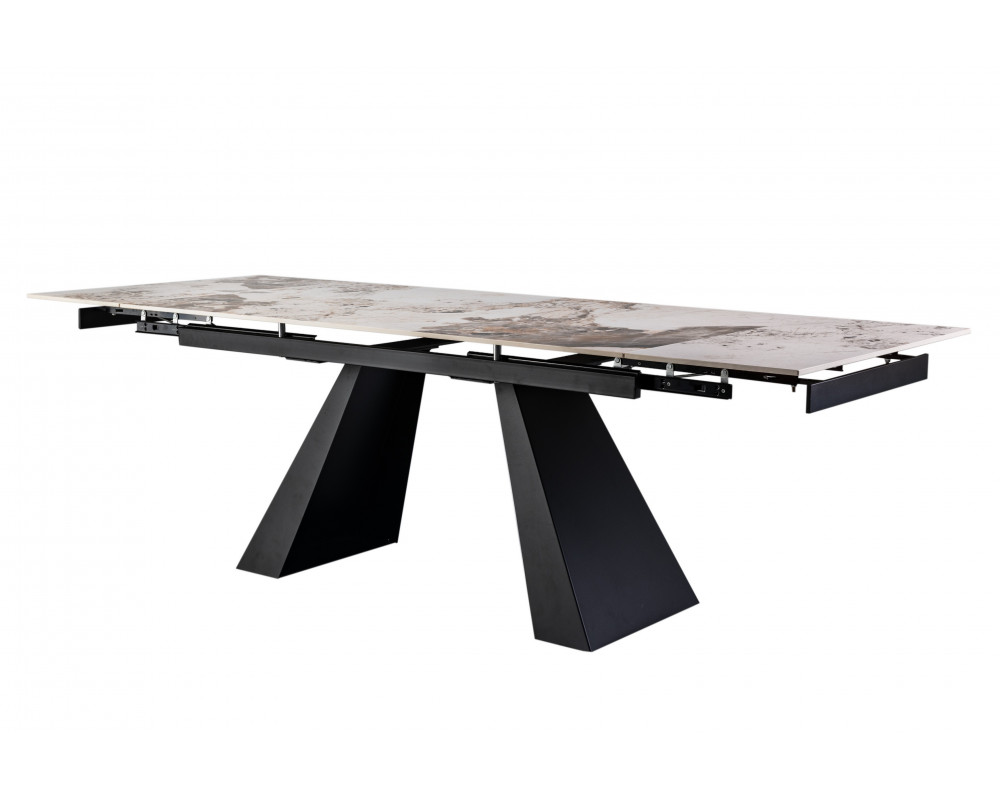 Керамический стол Чезаре TML-1100 — это истинное воплощение роскоши и практичности в современном интерьере. Главной особенностью модели является столешница из глянцевой керамики в изысканном оттенке "патагония". Этот цвет завораживает благородным сочетанием бежевых, серых и белых тонов с выразительными темными прожилками, имитирующими натуральный минерал. Благодаря надежному боковому механизму раскладки, стол легко трансформируется, позволяя с комфортом разместить большую компанию друзей или семьи. Черное металлическое основание придает конструкции устойчивость и завершает стильный современный образ.