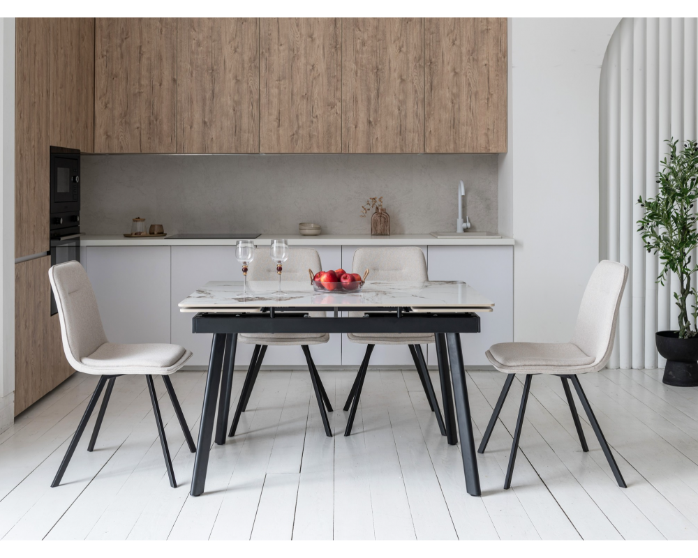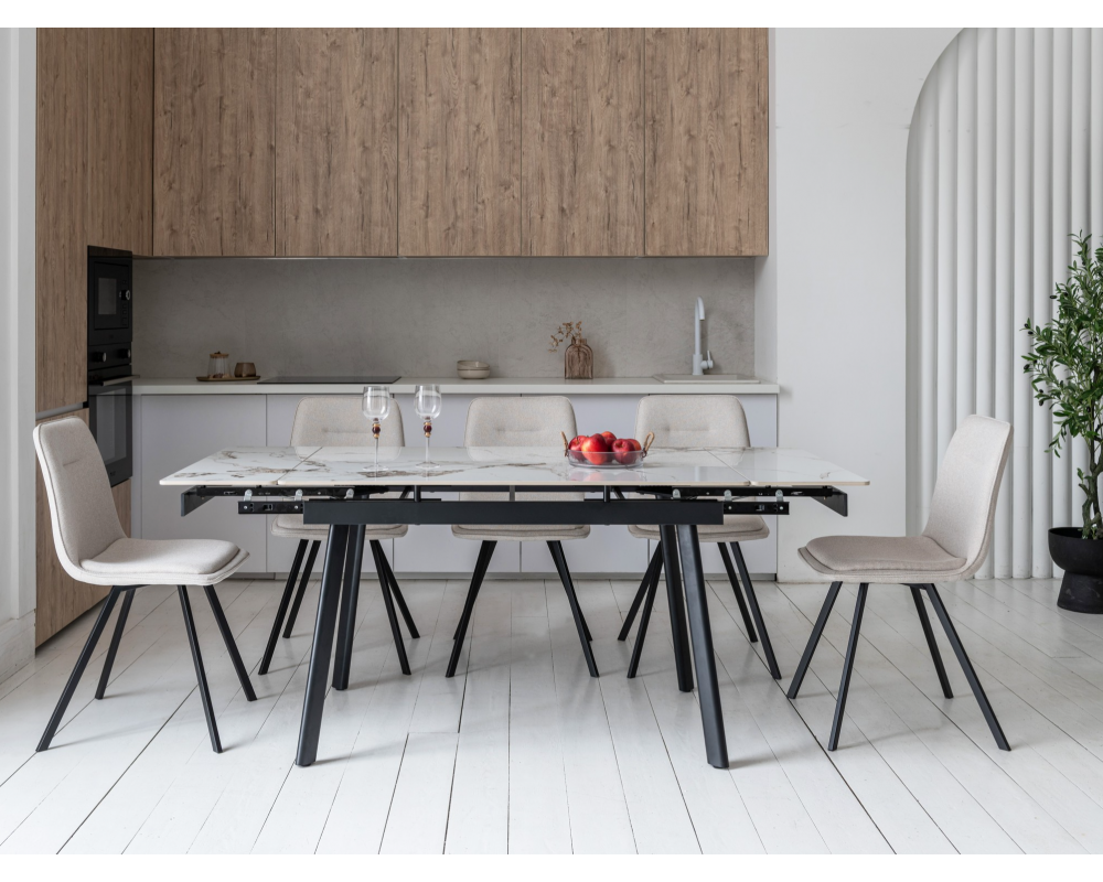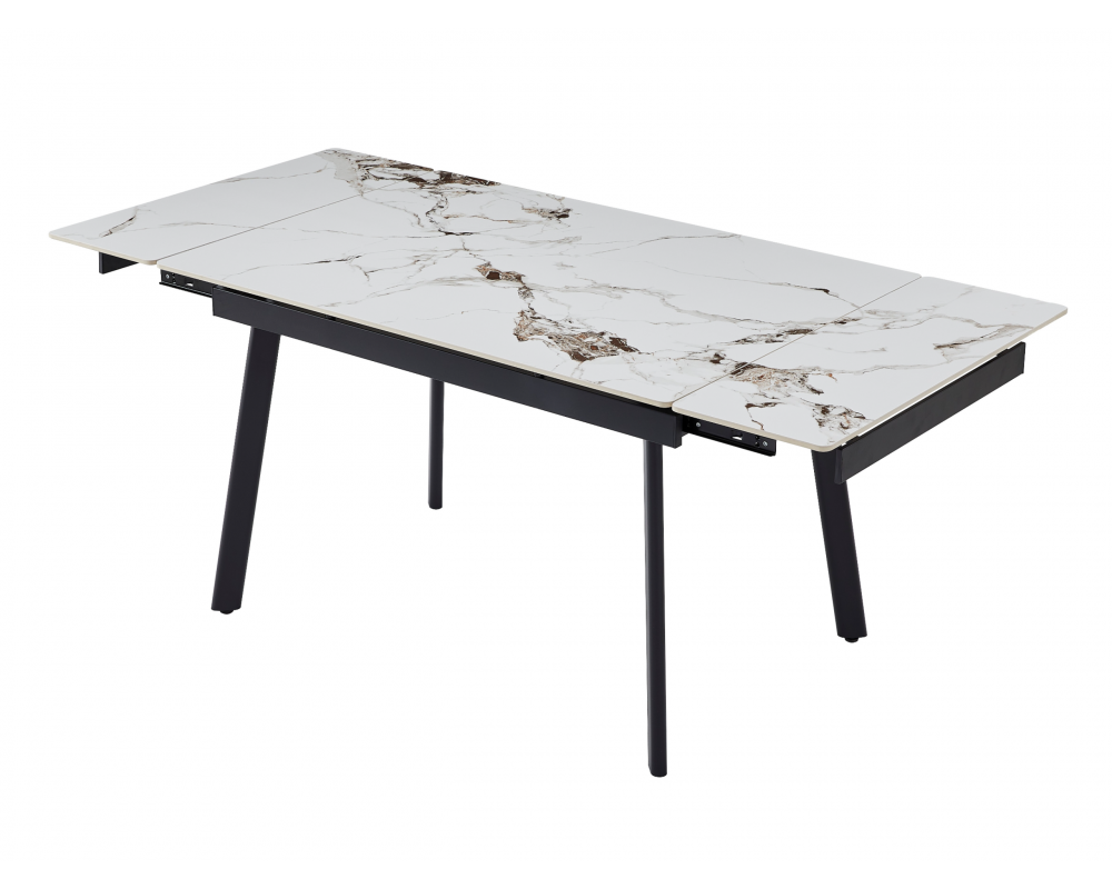 Керамический стол TM-98-1 в уникальном исполнении "панда вайт" — это настоящий арт-объект в вашей обеденной зоне. Столешница из матовой керамики с выразительным черно-белым рисунком имитирует редкий вид мрамора, придавая интерьеру динамику и эксклюзивность. Модель оснащена надежным боковым механизмом раскладки, который позволяет увеличить длину стола со 120 см до 180 см, обеспечивая комфортное размещение. Прочное металлическое основание в черном цвете подчеркивает графичность дизайна и гарантирует устойчивость конструкции.