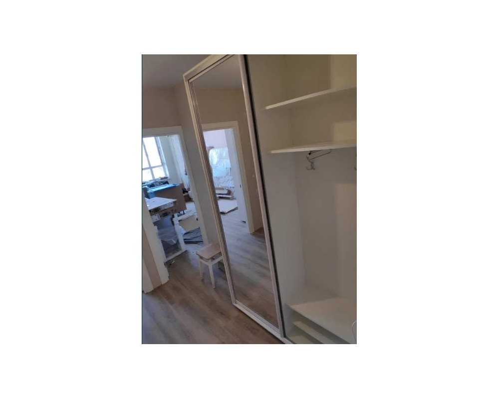 Прихожая-купе Жемчужина Зеркало Комфорт-мебель - оптимальное решение для небольшого помещения. Прихожая компактная, но конструкция предусматривает все необходимое: закрытое отделение для хранения сезонной одежды с полками и выдвижной штангой, открытое отделение с полками для головных уборов, аксессуаров, тумбу для обуви, а также крючки для одежды и сумок.