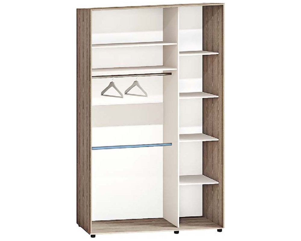 Шкаф-купе 240х45х150 Стандарт, 2 фасада ДСП Комфорт-меблі изготовлен из ламинированного ДСП (корпус и фасад). Наполнение шкафа функциональное, есть одно отделение для одежды на вешалках и отделение с полками.