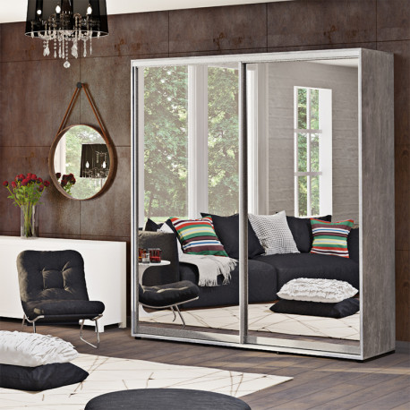 Шкаф-купе 240х60х160 Стандарт, 2 фасада Зеркало Комфорт-меблі изготовлен из ламинированного ДСП - корпус. Зеркальные фасады выполняют функцию зеркала, а также расширяют пространство и добавляют уюта. Наполнение шкафа функциональное, есть одно отделение для одежды на вешалках и отделение с полками.