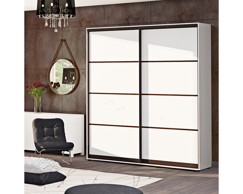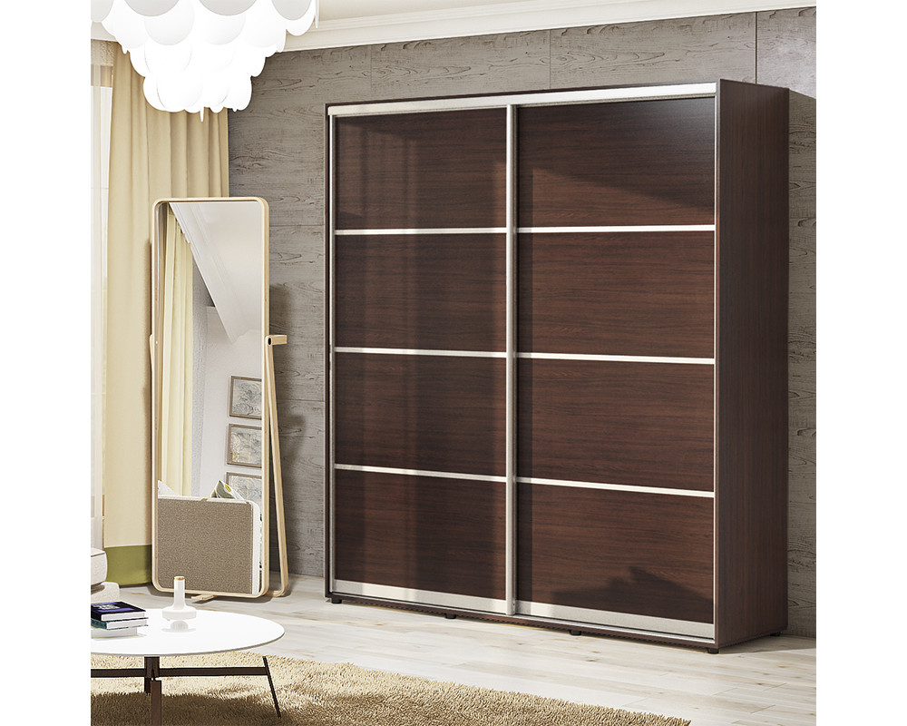Шкаф-купе 240х60х120 Стандарт, 2 фасада ДСП из 4-х частей Комфорт-меблі изготовлен из ламинированного ДСП (корпус и фасад). Деление фасадов на четыре части выглядит красиво и стильно. Наполнение шкафа функциональное, есть одно отделение для одежды на вешалках и отделение с полками.