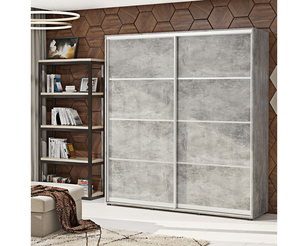 Шкаф-купе 240х45х190 Стандарт, 2 фасада ДСП из 4-х частей Комфорт-меблі изготовлен из ламинированного ДСП (корпус и фасад). Деление фасадов на четыре части выглядит красиво и стильно. Наполнение шкафа функциональное, есть одно отделение для одежды на вешалках и отделение с полками.