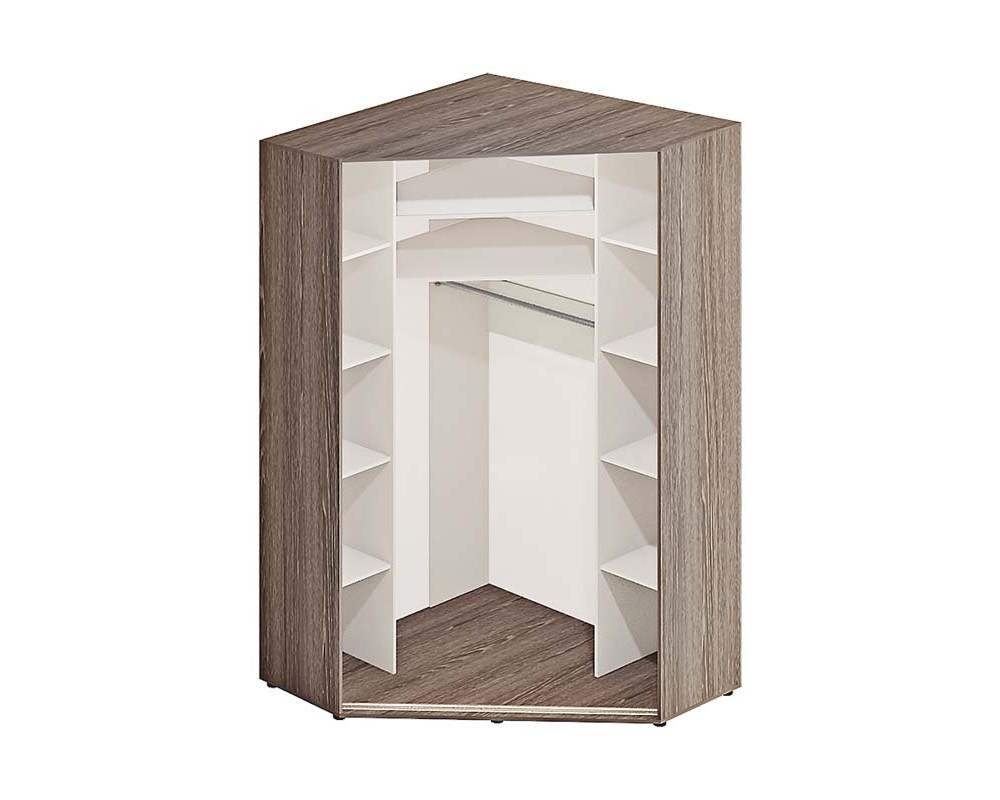 Шкаф-купе угловой 130х130х60х240 Моно-угол, фасады Зеркало+ДСП Комфорт-Меблі - оптимальное решение для тех, кто хочет разместить много вещей. Шкаф предусматривает все необходимое: боковые полочки с двух сторон, полочки вверху и штанга для тремпелей.