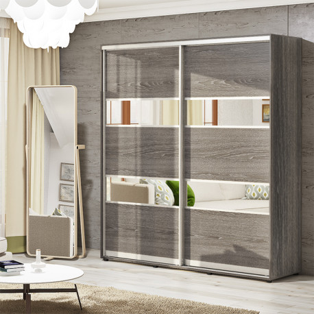 Шкаф-купе 240х45х130 Стандарт, 2 фасада Модель-3 Комфорт-меблі изготовлен из ламинированного ДСП - корпус, а фасад стильная комбинация ДСП и зеркала или цветных вставок. Наполнение шкафа функциональное, есть отделение для одежды на вешалках и отделение с полками.