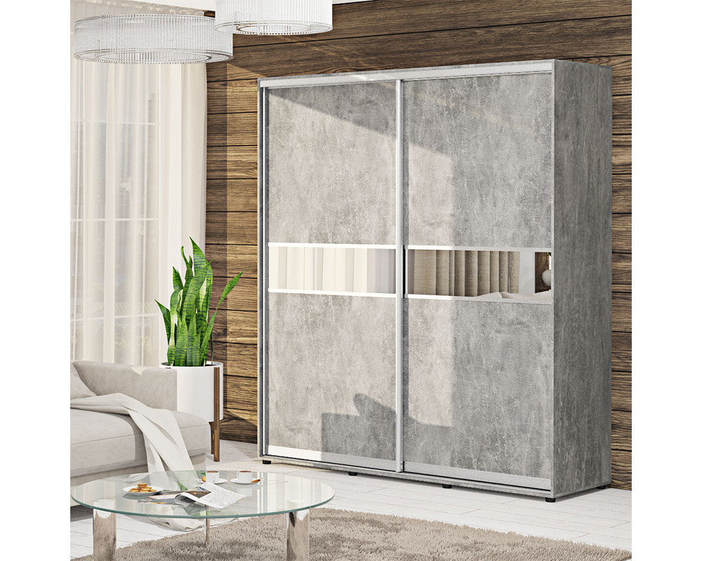 Шкаф-купе 240х60х110 Стандарт, 2 фасада Модель-2 Комфорт-меблі изготовлен из ламинированного ДСП - корпус, а фасад стильная комбинация ДСП и зеркала или цветных вставок. Наполнение шкафа функциональное, есть отделение для одежды на вешалках и отделение с полками.