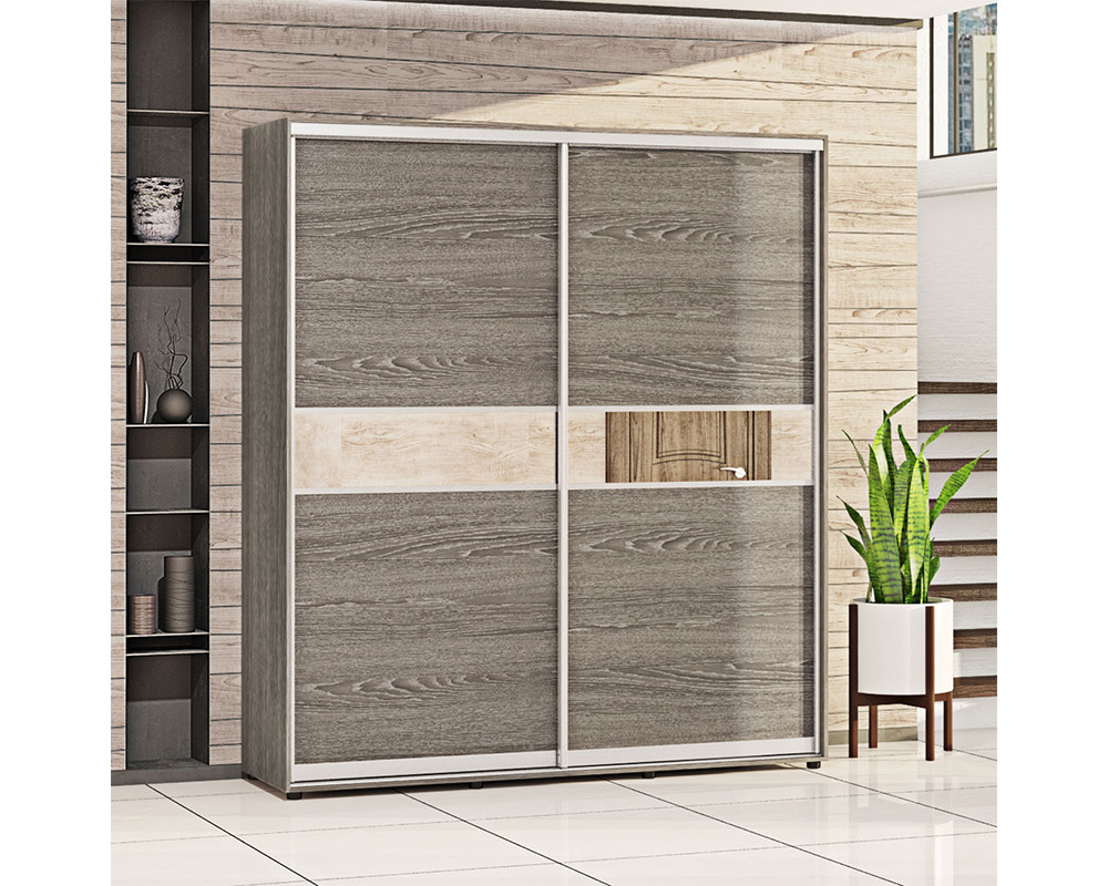 Шкаф-купе 240х60х150 Стандарт, 2 фасада Модель-2 Комфорт-меблі изготовлен из ламинированного ДСП - корпус, а фасад стильная комбинация ДСП и зеркала или цветных вставок. Наполнение шкафа функциональное, есть отделение для одежды на вешалках и отделение с полками.