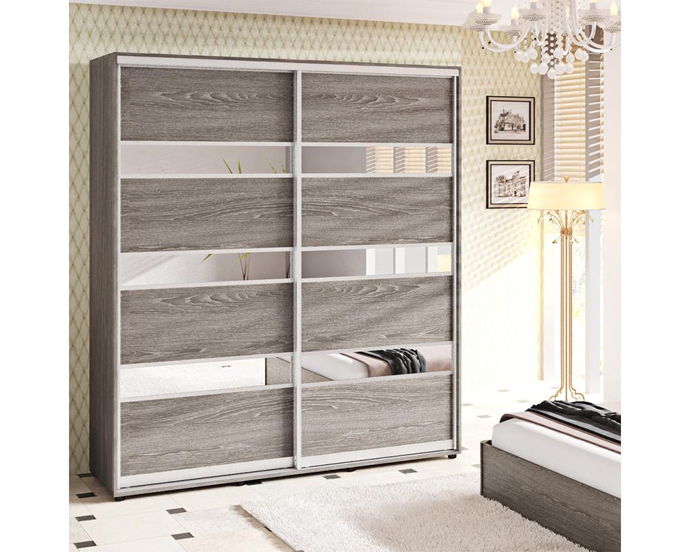 Шкаф-купе 240х60х160 Стандарт, 2 фасада Модель-4 Комфорт-меблі изготовлен из ламинированного ДСП - корпус, а фасад стильная комбинация ДСП и зеркала или цветных вставок. Наполнение шкафа функциональное, есть отделение для одежды на вешалках и отделение с полками.
