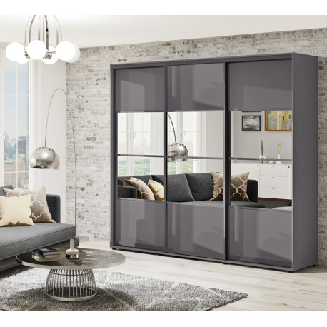 Шкаф-купе 240х60х220 Стандарт, 3 фасада Модель-8 Комфорт-меблі изготовлен из ламинированного ДСП - корпус, а фасад стильная комбинация ДСП и зеркала. Наполнение шкафа функциональное, есть два отделения для одежды на вешалках и отделение с полками.