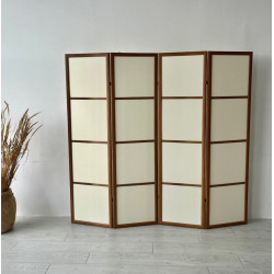 Якщо Ви прагнете купити ширму для кімнати недорого і створити ексклюзивний інтер'єр, то досить вибрати модель з МДФ і тканини. Конструкція являє собою прямокутні рами з планок МДФ, які обтягнуті тканиною. Стулки з'єднані між собою петлями і спираються на ніжки або на коліщатка. Таку ширму просто складати, транспортувати і зберігати.