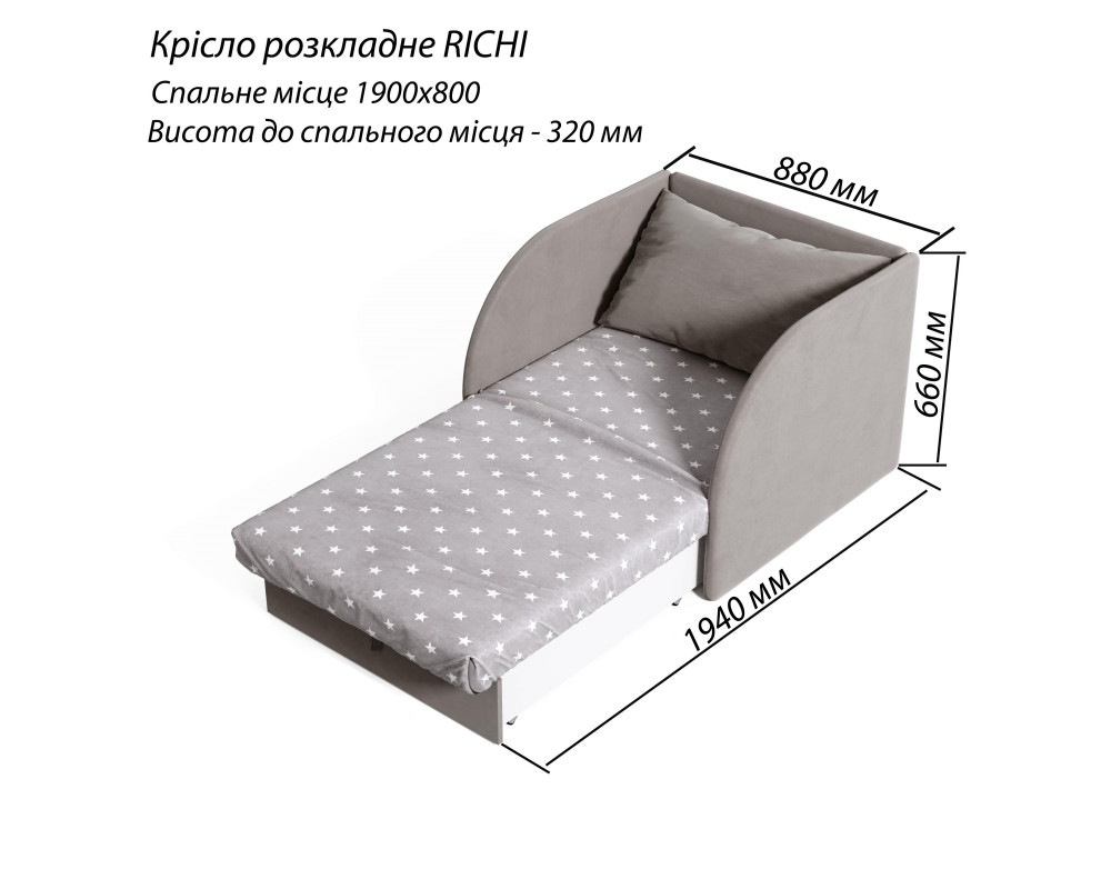 Крісло-ліжко Viorina-Deko RICHI ALLURE Dusty rose виготовлене фабрикою з якісних та безпечних матеріалів, не займає багато місця та підійде для невеликої кімнати. Тканинна оббивка міцна та практична. Простий та надійний механізм розкладки забезпечує комфортне спальне місце.
