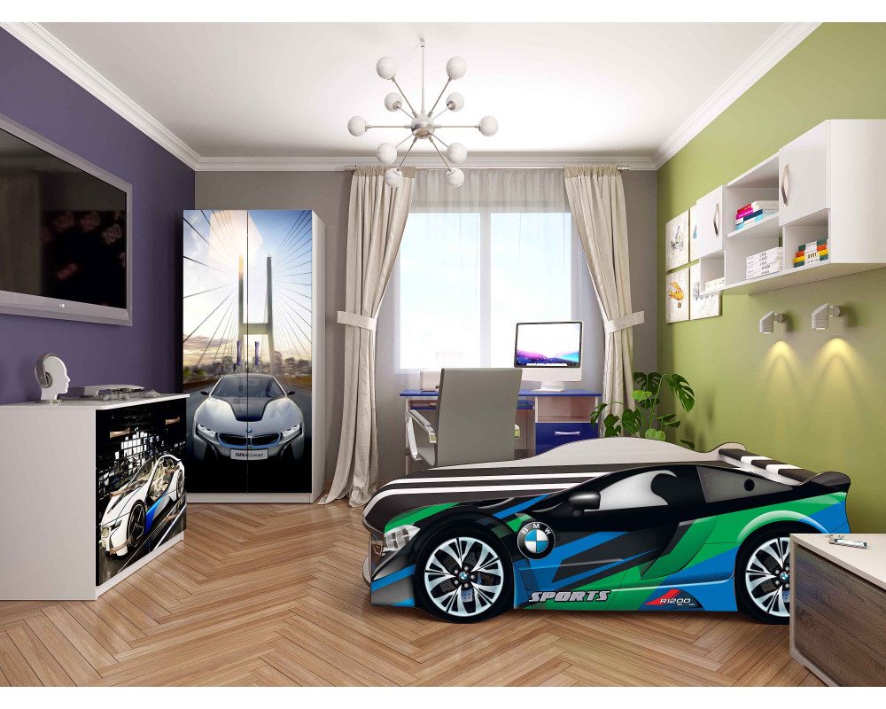 Ліжко + матрац Viorina-Deko SPACE 03 Зелено-синій виготовлене фабрикою Viorina-Deko з якісних матеріалів і підійде для діток від 3-х років. Конструкція з м'яким спойлером і подушкою. Малюнок виконаний за допомогою ламінованої наклейки, яка стійка до механічних пошкоджень і вицвітання, а так же легко миється.