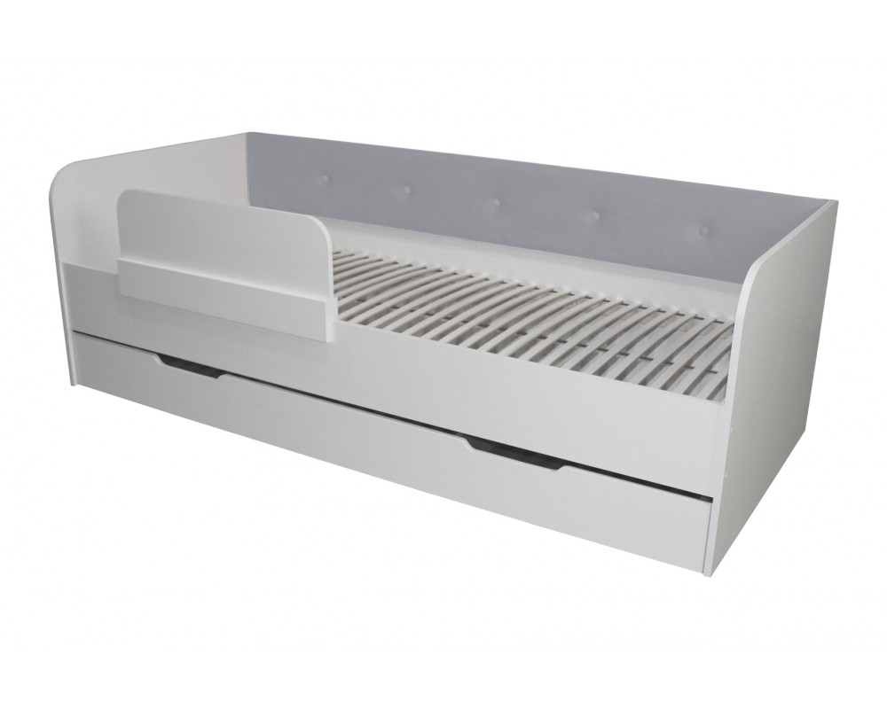Ліжко односпальне Valencia з шухлядою+захисний бортик Viorina-Deko світло-сірий виготовлено фабрикою з якісних і безпечних матеріалів. Каркас з ЛДСП 16 мм(Swisspan). Сучасний дизайн ліжка та стильне поєднання ЛДСП у такому оригінальному забарвленні підкреслить затишну атмосферу спальні.