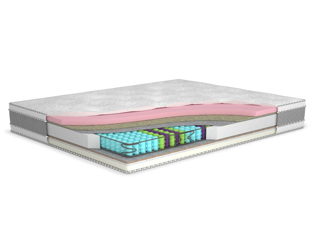 | Основа матраца - семізональний пружинний блок Pocket Spring. В даному блоці пружини розташовані незалежно один від одного і поміщені в кишеньки з спанбонду. А так же розподілені по зонах в залежності від жорсткості. Таке розташування забезпечує правильну точкову підтримку хребта під час сну, відсутності ефекту коливання і рівномірно розподіляє навантаження по поверхні матраца. | |