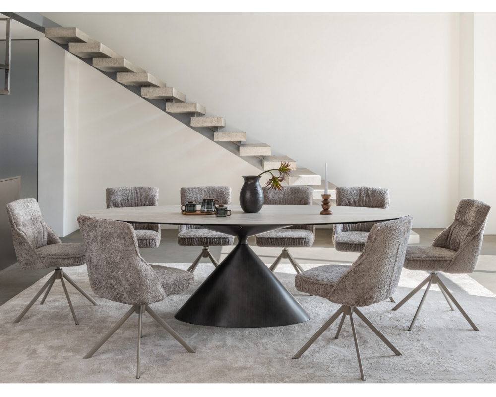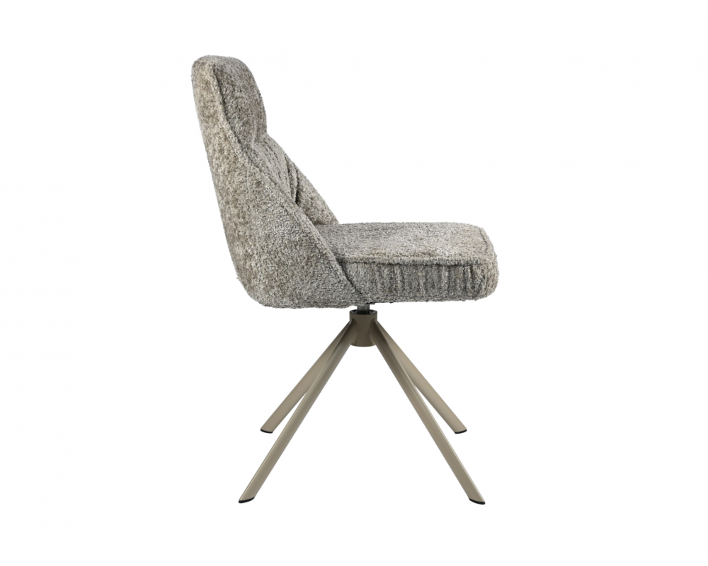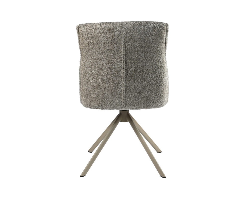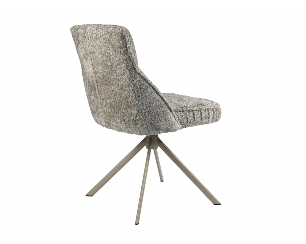 Поворотний стілець R-168 у благородному поєднанні перлинного таупу та капучино — це втілення ергономіки та стилю. Модель оснащена функцією обертання на 360° з автоповоротом, що забезпечує максимальну свободу рухів. Використання трендової тканини букле надає стільцю особливої м'якості, затишку та вишуканого візуального об'єму.