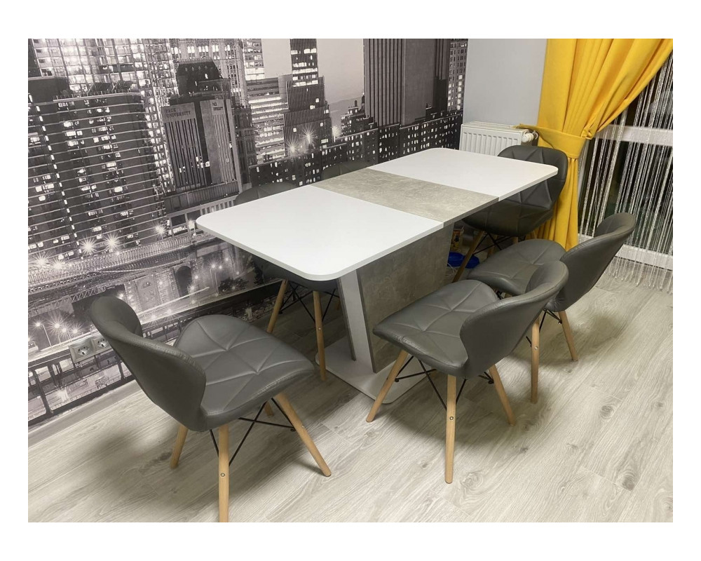 Стіл обідній Cosmo 110-145 Intarsio це розкладна модель буде знахідкою для стильної і сучасної кухні. Стіл відрізняється стильним дизайном і якісними матеріалами. Виготовлений з того, що ламінує ДСП, з використанням надійної фурнітури.