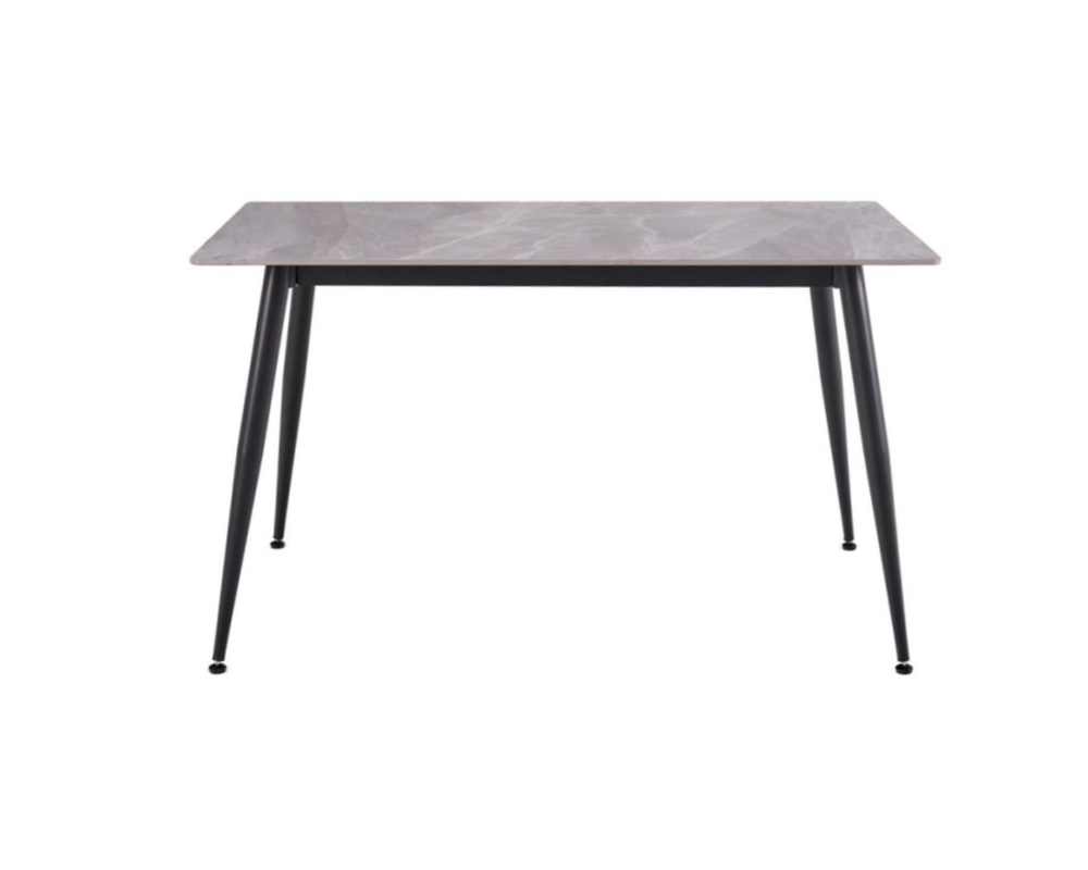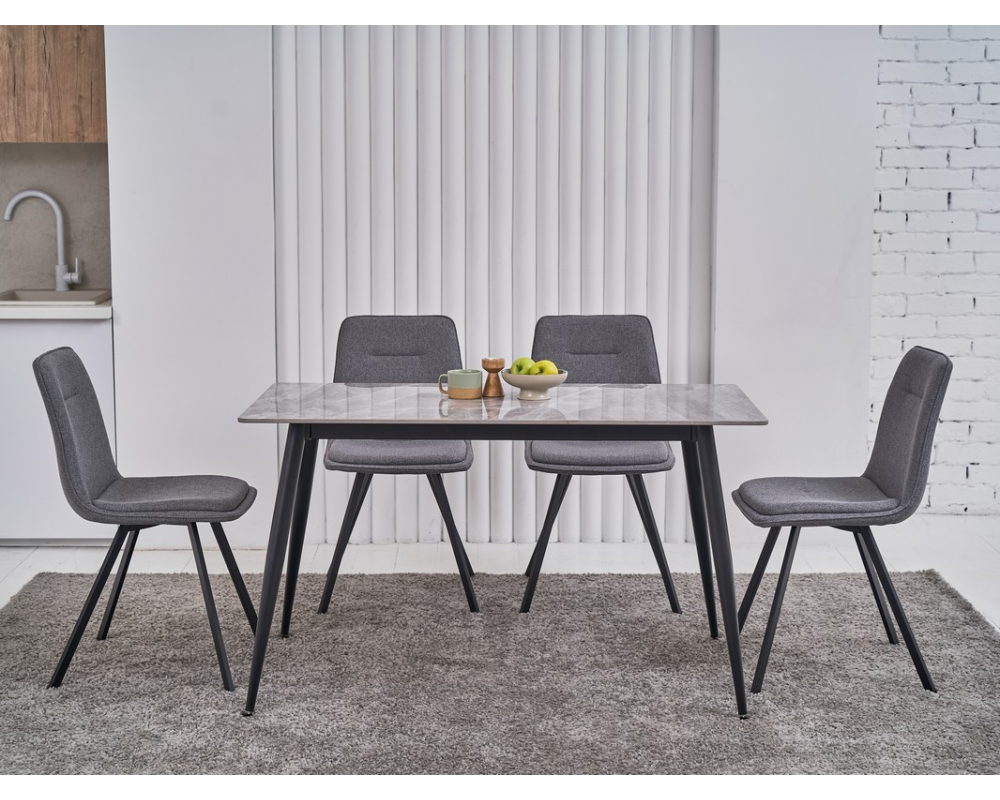 Стіл керамічний TM-100 калакатта грей/чорний Vetro Mebel ідеально підійде для інтер'єру в стилі лофт або модерн. Стільниця з імітацією мармуру, ніжки з металу, забарвлені в чорний колір.