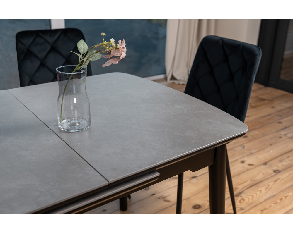 Висока Надійність: Стільниця з матової кераміки та МДФ має виняткову стійкість до подряпин, вологи та температурних змін, роблячи звичайний обідній стіл більш вишуканим і довговічним.