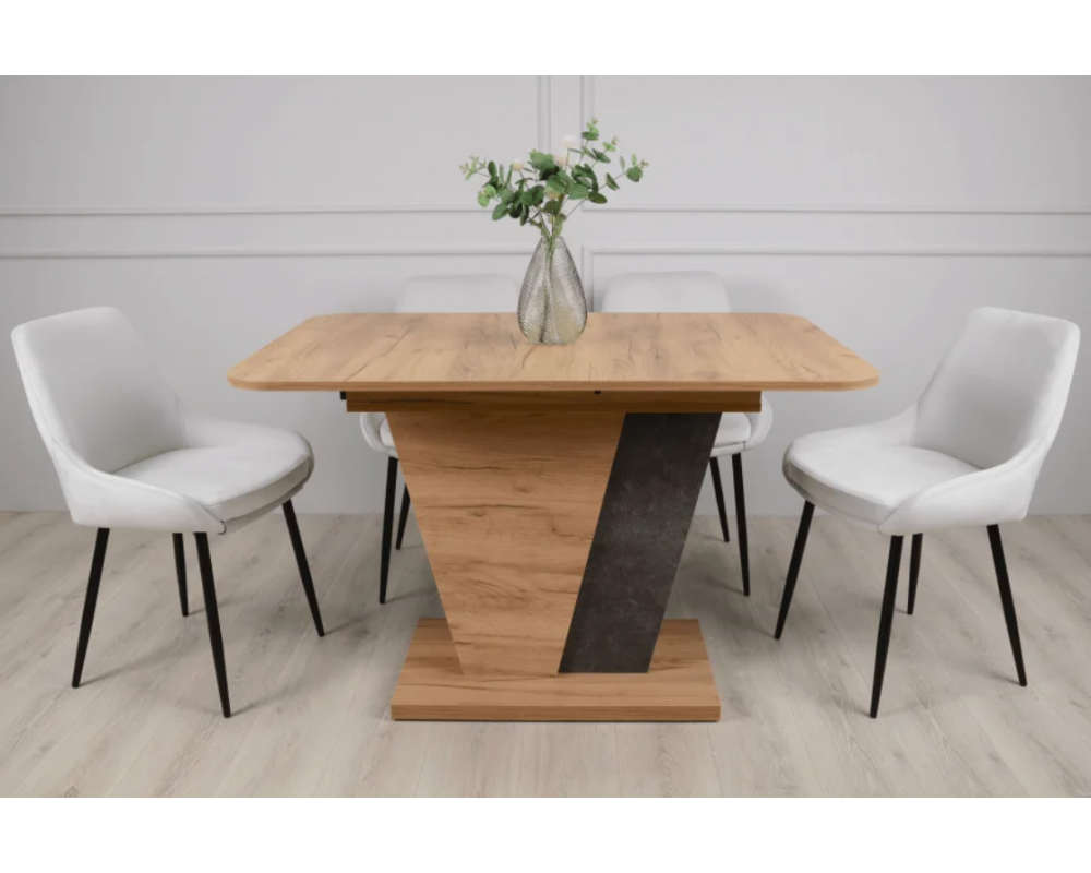 Обідній стіл Forest Intarsio це розкладна модель для сучасної кухні. Стіл відрізняється стильним дизайном та якісними матеріалами, розрахований на 6-8 осіб. Виготовлений із ламінованого ДСП, з використанням надійної фурнітури.