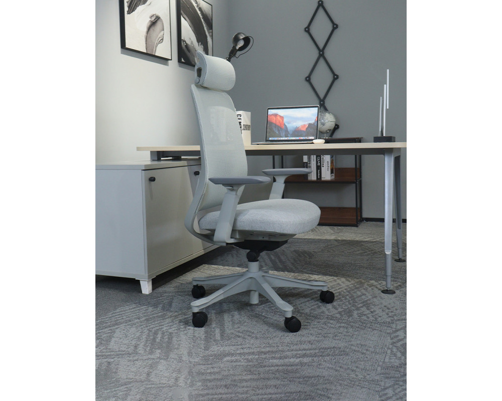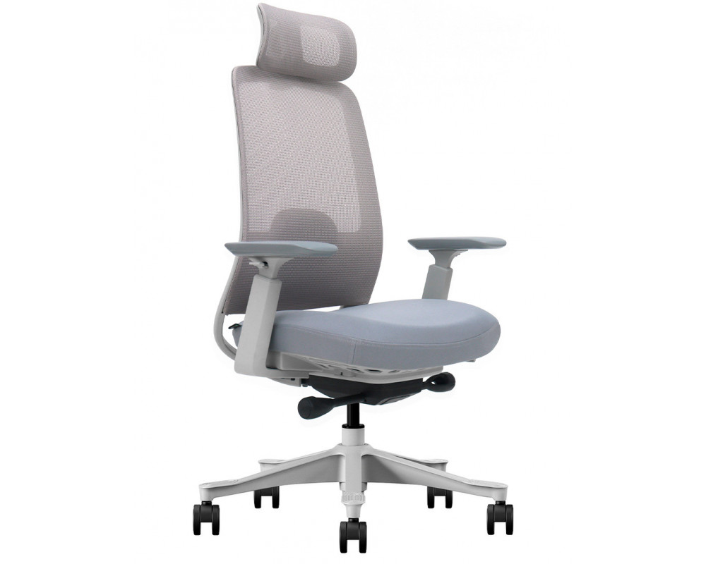 Підлокітники та підголовник регулюються в декількох напрямках, допомагаючи підібрати оптимальну посадку. Нейлонова основа сірого кольору стійка та витримує навантаження до 120 кг.