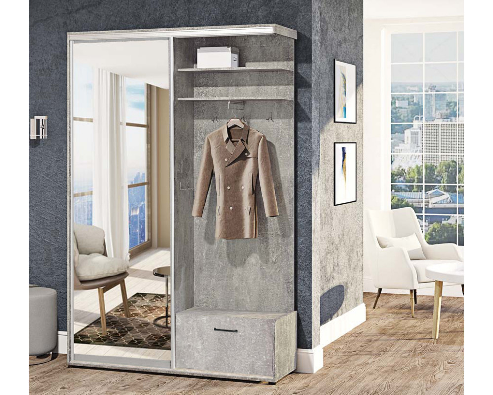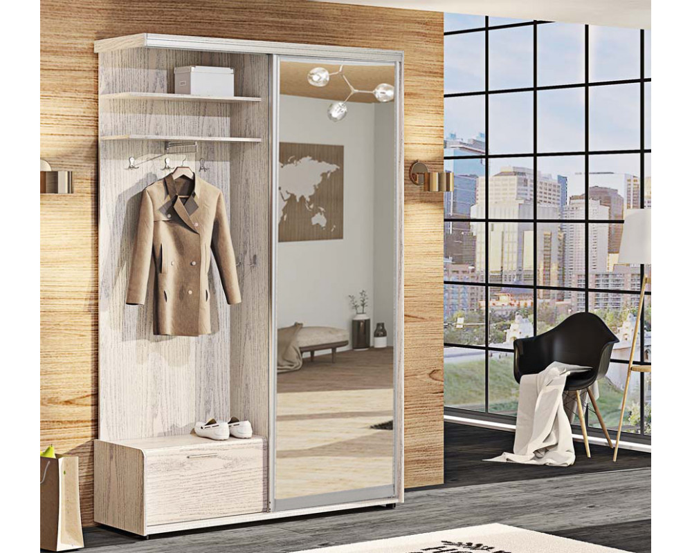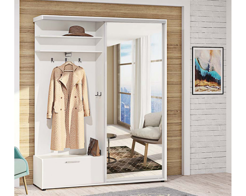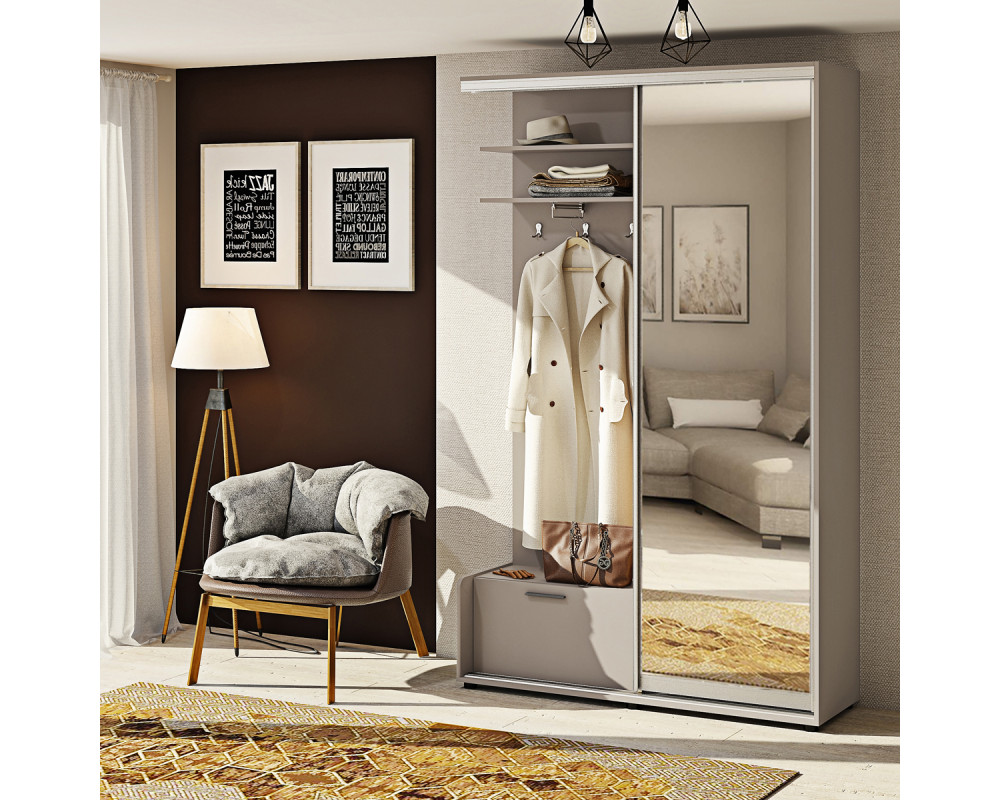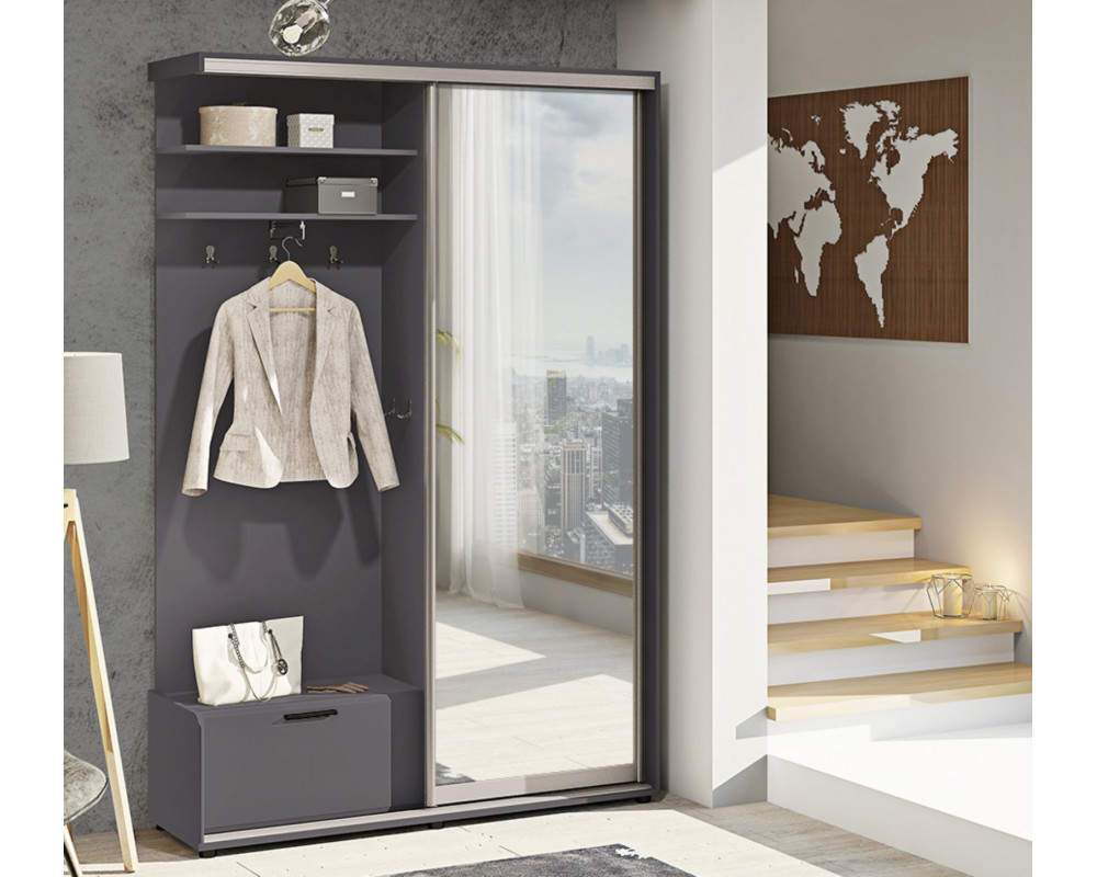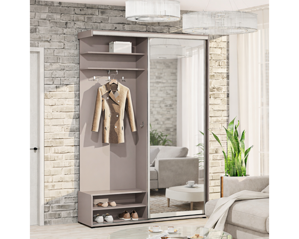 Передпокій-купе Хіт від Комфорт Меблі з дзеркальними фасадами — це ідеальне рішення для невеликих або вузьких коридорів. Суцільне дзеркальне полотно не тільки виконує свою пряму функцію, а й наповнює приміщення світлом, візуально подвоюючи його площу.