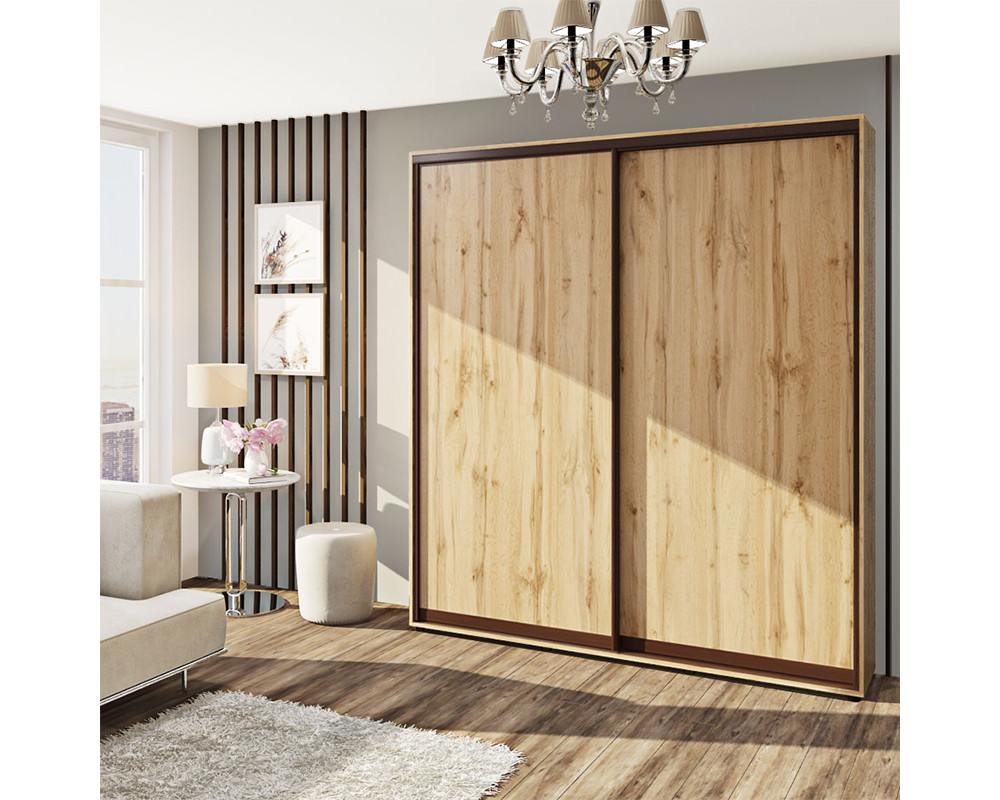 Шафа-купе 240х45х200 Стандарт, 2 фасади ДСП Комфорт-меблі виготовлена з ламінованого ДСП (корпус і фасад). Наповнення шафи функціональне, є один відділ для одягу на вішаках і відділ з полками.