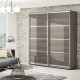 Шафа-купе 240х60х140 Стандарт, 2 фасади ДСП з 4-х частин Комфорт-меблі виготовлена з ламінованого ДСП (корпус і фасад). Фасад з діленням на чотири частини виглядає стильно і сучасно. Наповнення шафи функціональне, є один відділ для одягу на вішаках і відділ з полками.