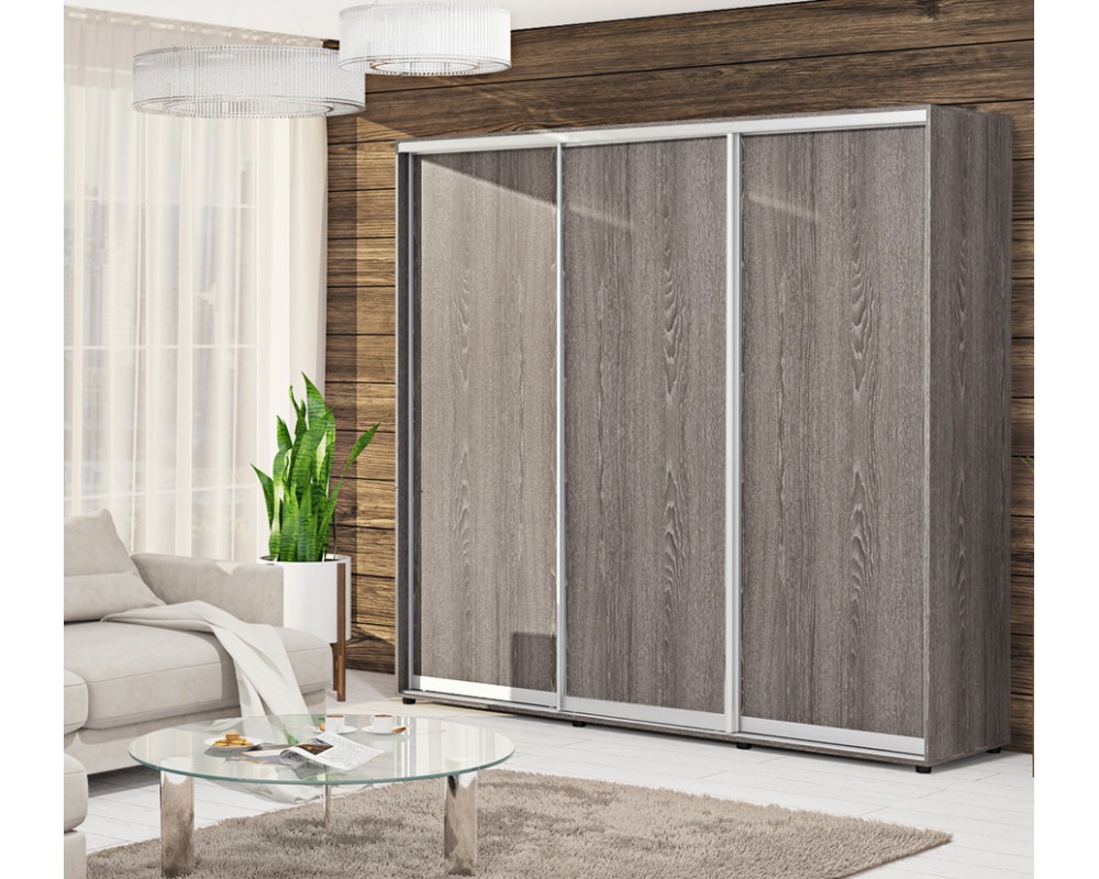 Шафа-купе 240х60х220 Стандарт, 3 фасади ДСП Комфорт-меблі виготовлена з ламінованого ДСП (корпус і фасад). Наповнення шафи функціональне, є два відділа для одягу на вішаках і відділ з полками.