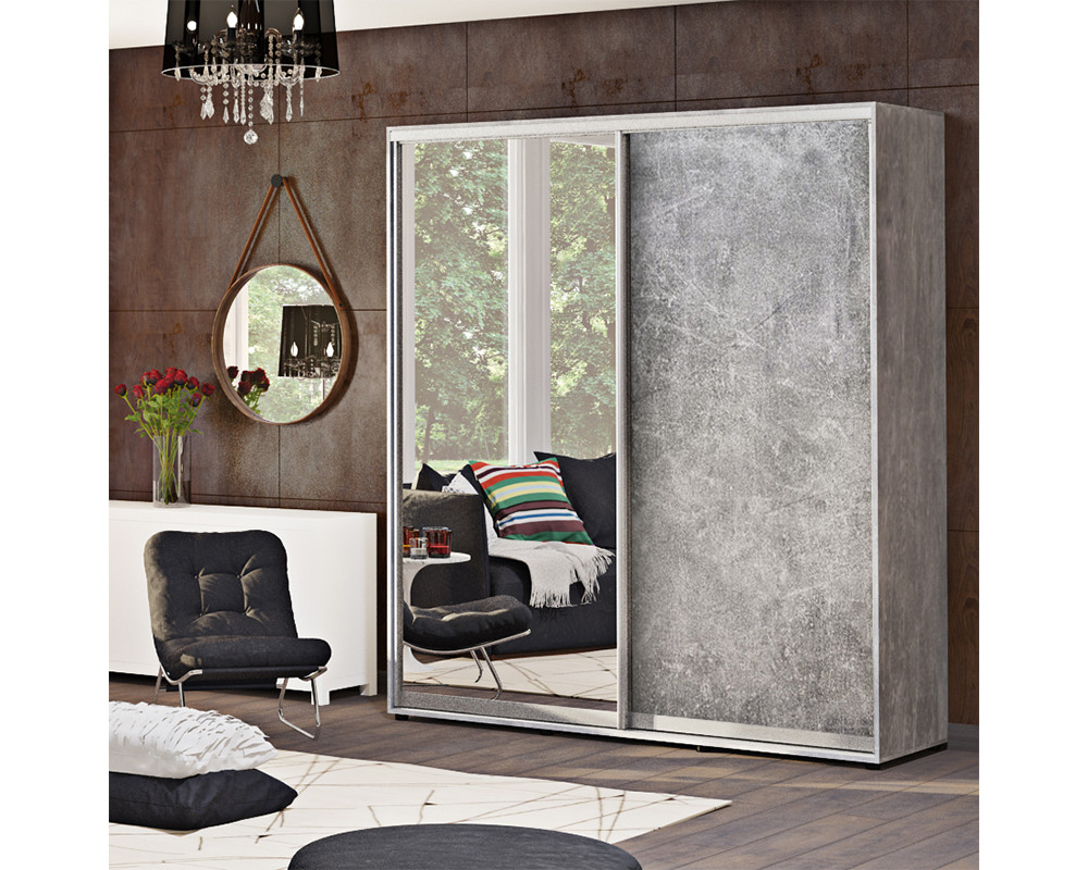 Шафа-купе 240х45х190 Стандарт, 2 фасади ДСП+Дзеркало Комфорт-меблі виготовлена із ламінованого ДСП (корпус). Один фасад із ЛДСП, другий із дзеркала. Наповнення шафи функціональне, є одне відділення для одягу на вішалках та відділення з полицями.