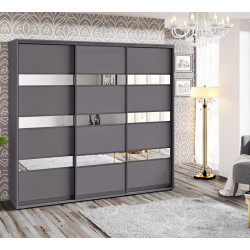 Шафа-купе 240х60х240 Стандарт, 3 фасади Модель-4 Комфорт-меблі виготовлена з ламінованого ДСП - корпус, а фасад - стильна комбінація ДСП і дзеркала або кольорових вставок. Наповнення шафи функціональне, є два відділа для одягу на вішаках і відділ з полками.