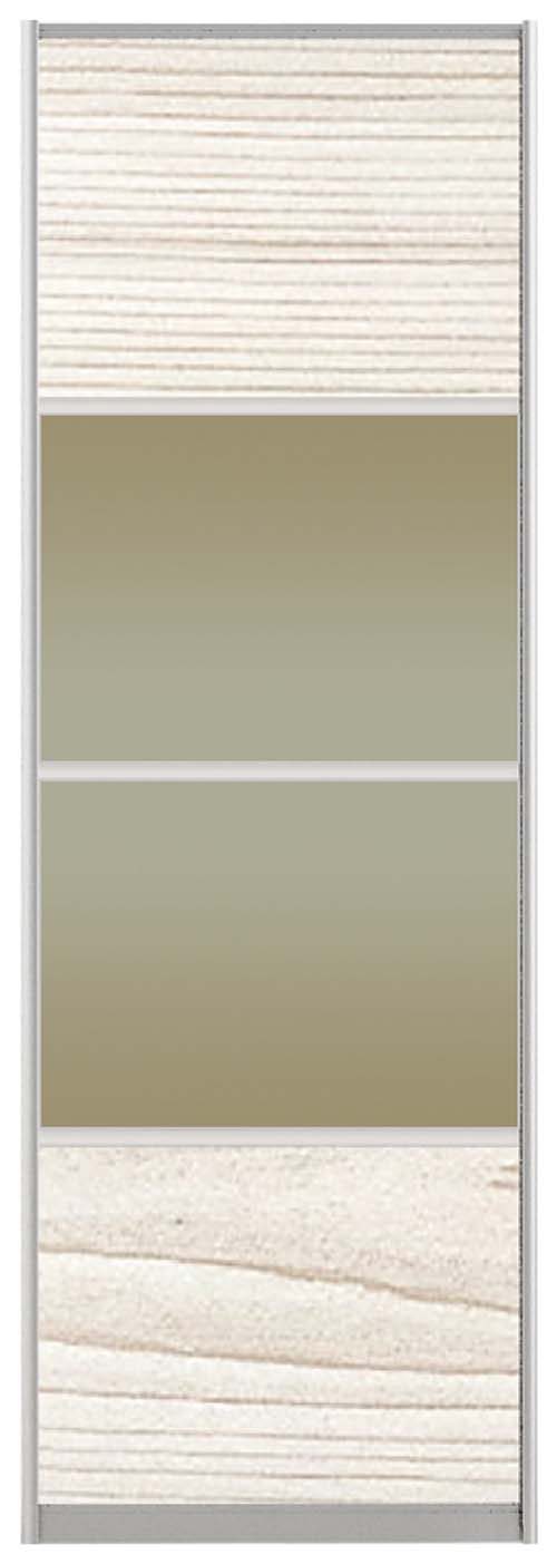 Шафа-купе 240х60х210 Стандарт, 3 фасади Модель-8 Комфорт-меблі виготовлена з ламінованого ДСП - корпус, а фасад - стильна комбінація ДСП і дзеркала. Наповнення шафи функціональне, є два відділа для одягу на вішаках і відділ з полками.