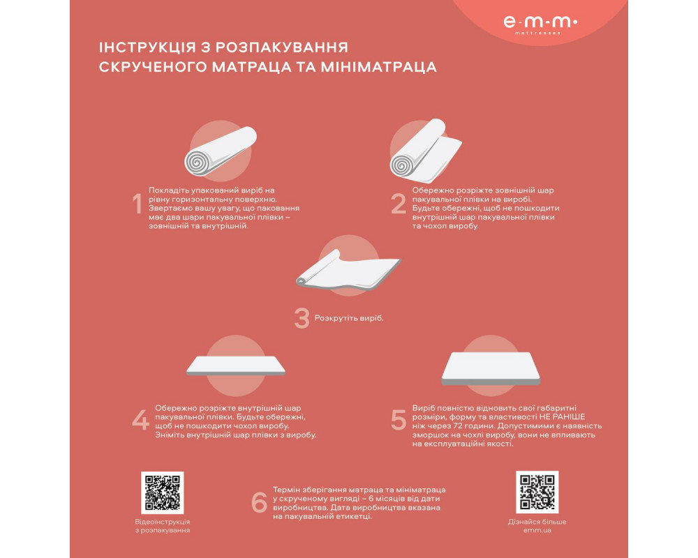 Обережно розкрийте зовнішню вакуумну упаковку Вашого нового матраца, не використовуючи гострих предметів (дотримуйтеся обережності, щоб не пошкодити оббивку).