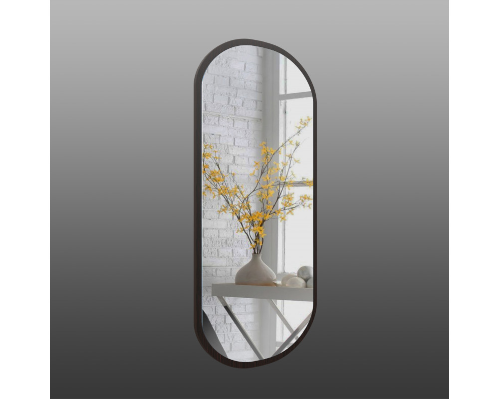 Дзеркало на основі ЛДСП Art-com ZR7 Венге - це модель округлої форми, вироблено в Україні. Складається з дзеркального полотна (Бельгія) і основи у вигляді плити ЛДСП 16мм (Kronospan). Основа виконана в кольорі венге і обклеєна щільною кромкою. Дзеркало не боїться високої вологості і перепадів температури, так як має захисне покриття.