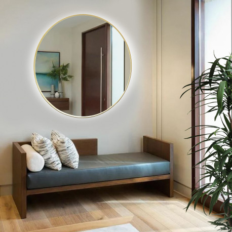 Зеркало с подсветкой в металлической золотой раме Art-com МРЛ-3 сочетает в себе простой, минималистичный дизайн, качественные материалы и доступную цену. Зеркальное полотно - чистое без единого изъяна, влагостойкое. Рама за счет толщины металла в 4 мм выглядит надежной и массивной.